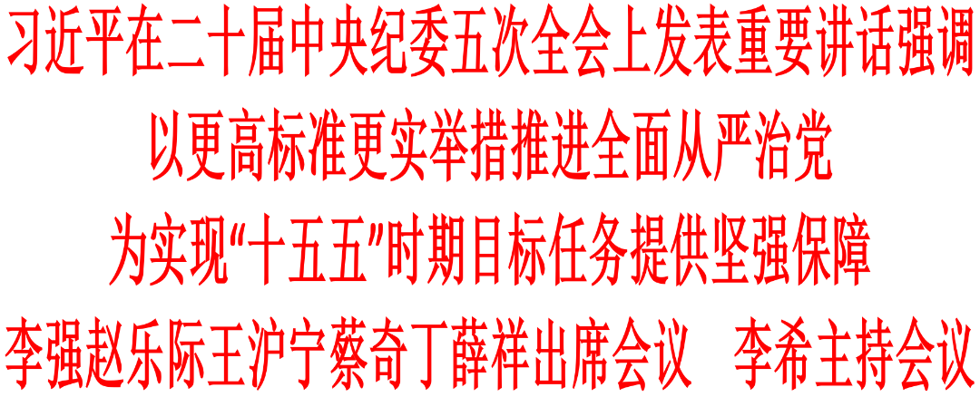 李希在主持会议时指出,习近平总书记的重要讲话,充分肯定过去一年全面从严治党取得的显著成效,着眼基本实现社会主义现代化关键时期,对以更高标准、更实举措推进全面从严治党,为实现“十五五”时期目标任务提供坚强保障作出战略部署。讲话高屋建瓴、视野宏阔、思想深邃、内涵丰富,为深入推进全面从严治党和反腐败斗争提供了根本遵循。要深入学习贯彻习近平总书记重要讲话精神,深刻领悟“两个确立”的决定性意义,增强“四个意识”、坚定“四个自信”、做到“两个维护”,认真履行全面从严治党政治责任,以永远在路上的坚韧和执着,坚定不移把党的自我革命向纵深推进。