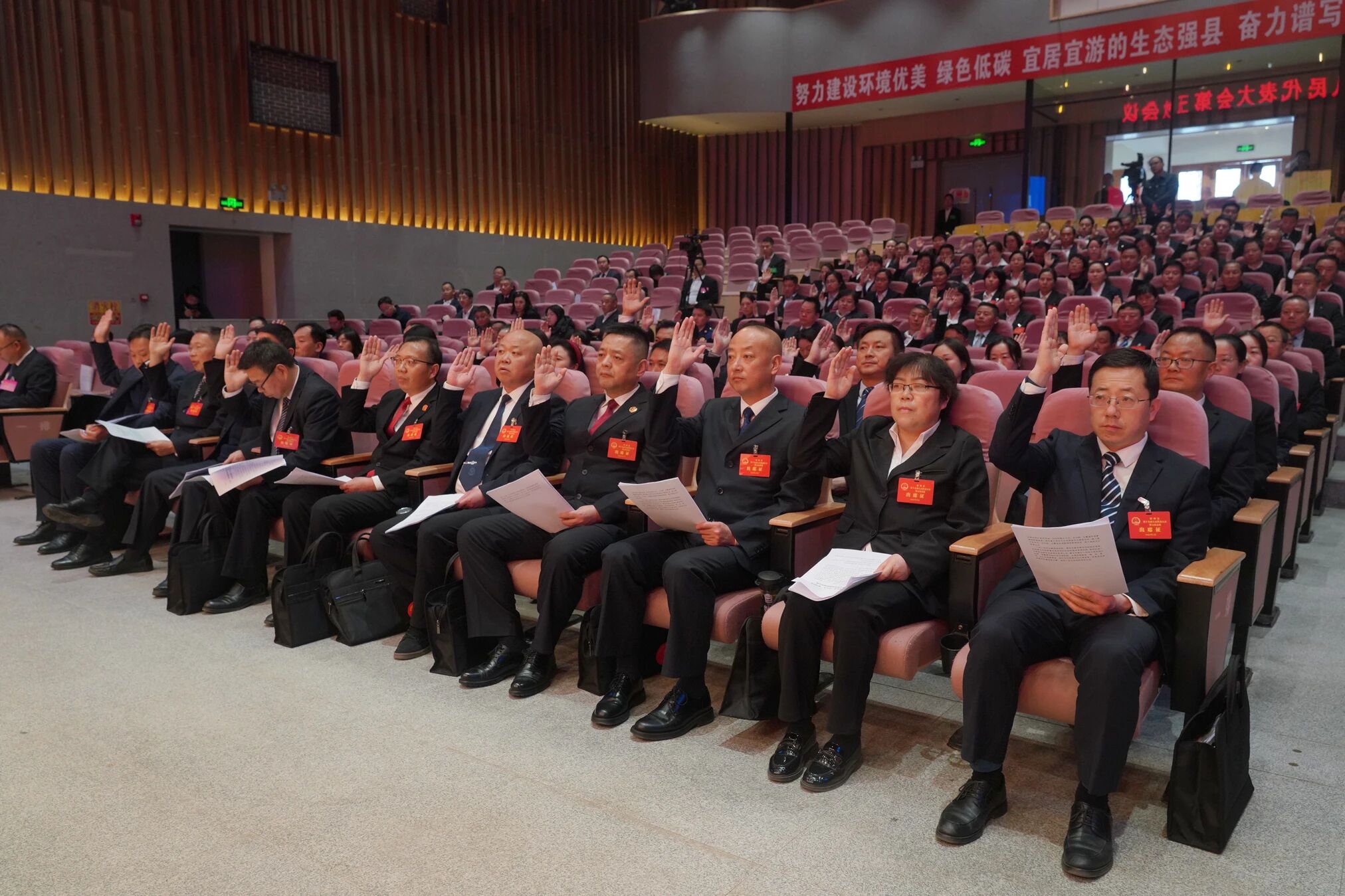 在与会代表的共同见证下,新当选的县监察委员会主任、县人大常委会委员,进行了宪法宣誓。