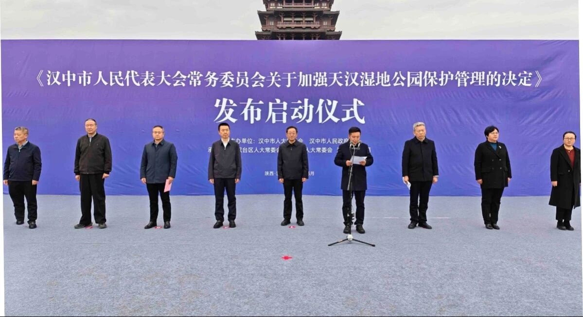 3月6日,《汉中市人民代表大会常务委员会关于加强天汉湿地公园保护管理的决定》(以下简称《决定》)实施启动仪式在天汉湿地公园女神广场举行。市人大常委会党组副书记、副主任胡新利出席并宣布《决定》正式施行,市人大常委会副主任杨守奎主持,副市长宋旭出席启动仪式。